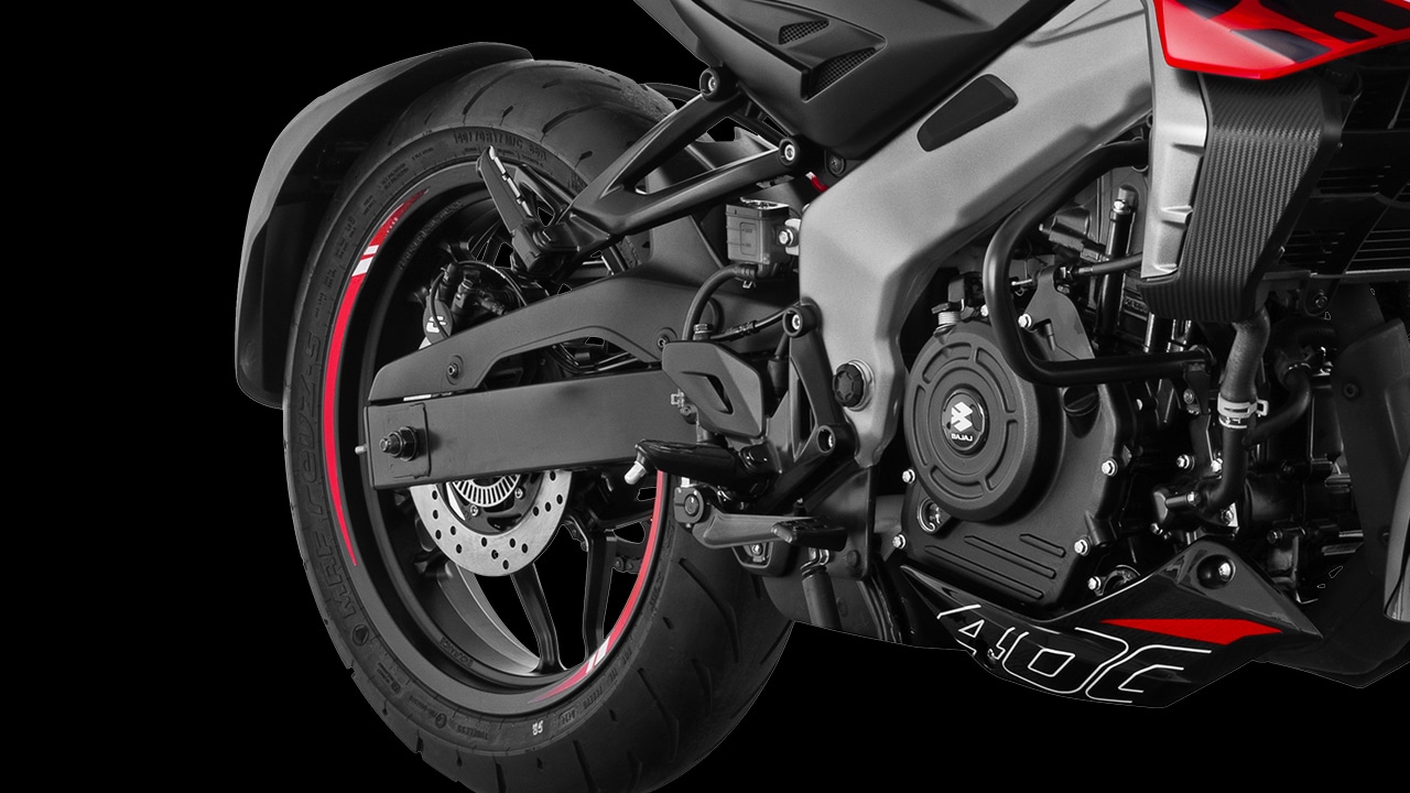 La tecnología de control de tracción de la Pulsar NS 400 evita el deslizamiento de la rueda trasera en superficies de baja adherencia, mejorando la seguridad y el rendimiento.